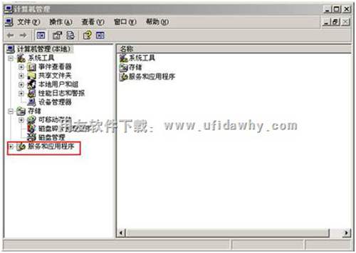 a、點擊“我的電腦”圖標右鍵打開“管理”-“服務和應用程序”。