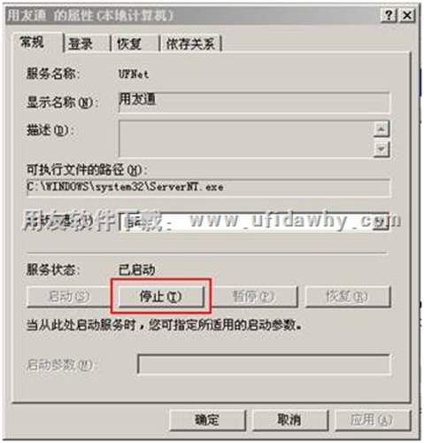 d、在“服務狀態(tài)”下先點擊“停止”。