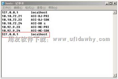 3、在最后添加一條記錄,輸入服務器的IP地址(注意中間一定要用 TAB鍵分開),再輸入服務器機器名字。(單擊版的用戶輸入127.0.0.1,和本機的計算機名稱。網絡版輸入服務器ip和服務器的計算機名稱)