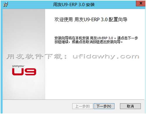 3、彈出歡迎使用友U9-ERP 3.0的安裝向?qū)?,點擊“下一步”繼續(xù)安裝。