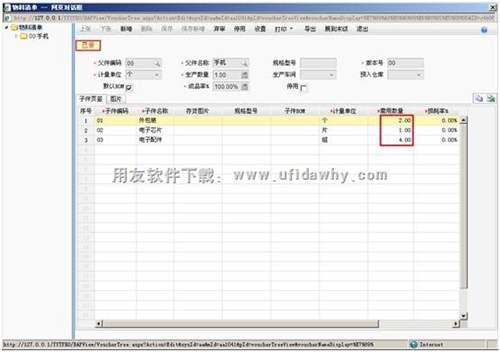 b、依次點(diǎn)擊“基礎(chǔ)設(shè)置”-“基本信息設(shè)置”-“物料清單”,點(diǎn)擊“新增”按鈕,增加相應(yīng)的物料清單,“父件”為手機(jī),“子件”為外包裝,電子芯片,電子配件(注:新增了物料清單之后要點(diǎn)擊“審核”按鈕才能生效):