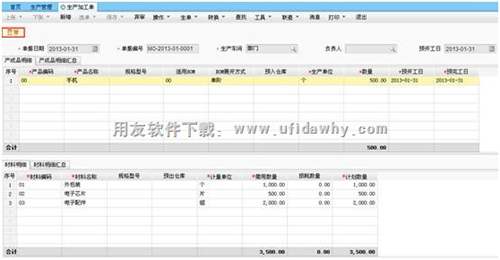 a、在用友暢捷通T+軟件中新增“生產(chǎn)加工單”,點(diǎn)擊“選單”按鈕,選擇銷售訂單生成,軟件會自動核算出需要多少原材料: