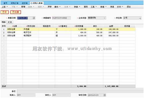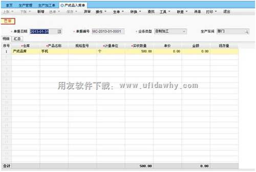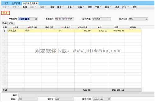 c、查看原產(chǎn)成品入庫單,成本已自動填入: