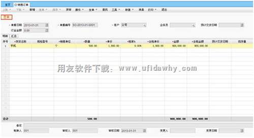 2、客戶訂貨時在T+軟件中填制一張銷售訂單: