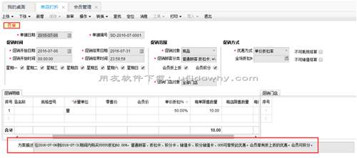 2、我們再在用友T+財務管理軟件中做一個促銷方案,設置好單品打折的促銷。