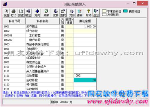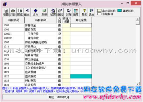 第2步、這時會彈出“期初余額錄入”對話框,如下圖所示:
