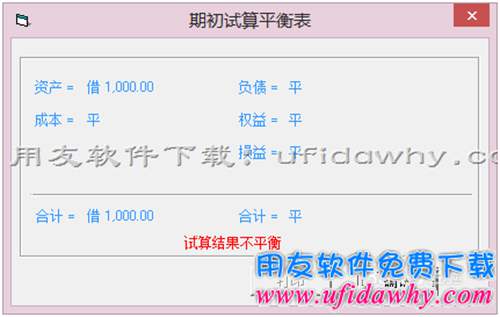 第5步、如果出現(xiàn)下圖,“試算結(jié)果不平衡”,那就要檢查原因,是不是錄入少了或者多了。否則會影響以后的操作。