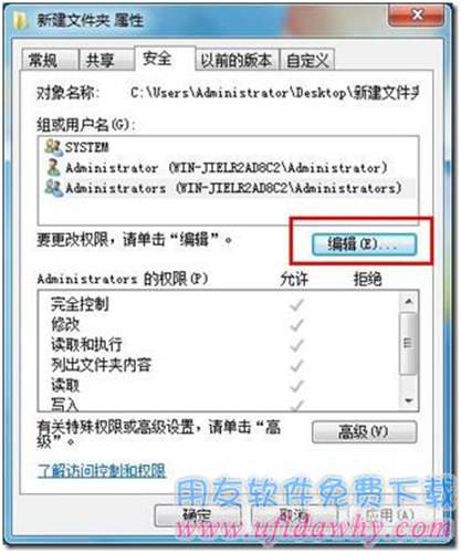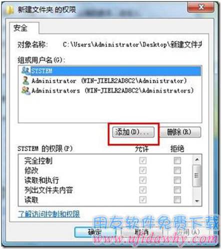(2)單擊“安全”頁(yè)簽,并點(diǎn)擊“編輯”按鈕,再點(diǎn)擊“添加”,如下圖所示: