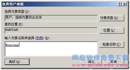 (4)選中everyone單擊“確定”回到可直接輸入用戶名的窗口,單擊“確定”,如下圖所示: