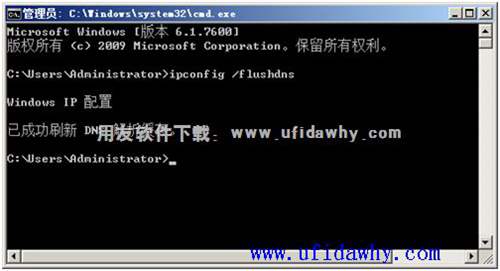 3、點(diǎn)擊“開(kāi)始”-“運(yùn)行”-輸入“CMD”進(jìn)入DOS界面,輸入ipconfig /flushdns,用此命令來(lái)清空DNS緩存,如下圖所示: