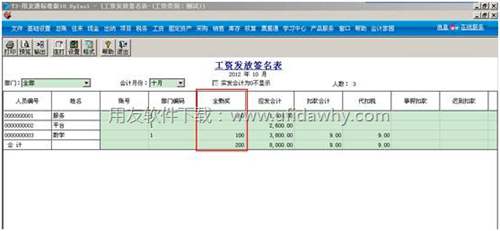 5、設置好后,在用友T3軟件工資管理模塊的工資發(fā)放簽名表中就可以顯示出來了,如下圖所示: