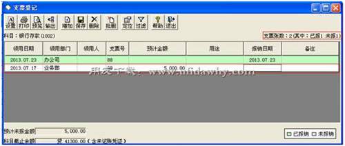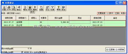 c、報銷完之后,返回支票登記簿查看顯示,支票號(99)已報銷,如下圖;