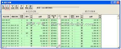 8、對賬完之后,取消對賬,進入銀行對賬單界面,可以看到“單位日記賬”和“銀行對賬單”,點擊“取消”,如下圖;