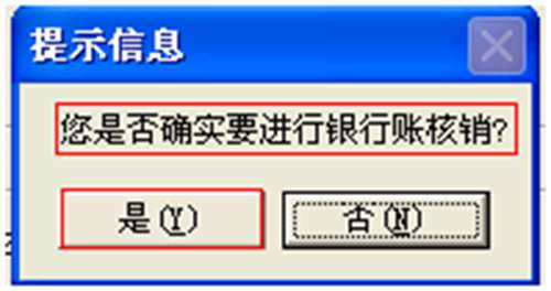 11、點擊“現(xiàn)金銀行”-“核銷銀行賬”-選擇“核銷銀行科目(1002)”,確定,提示信息:“您是否確實要進行銀行帳核銷?,點擊“是”,提示銀行賬核銷完畢”,如下圖;