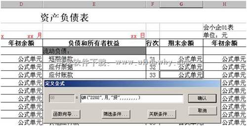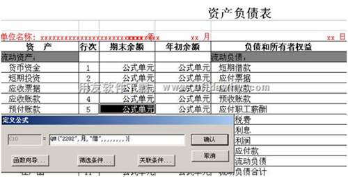 編制資產(chǎn)負(fù)債表時(shí),單元公式應(yīng)該設(shè)置為:應(yīng)付賬款:QM("2202",月,"貸",,,,,,,,)