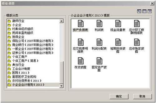 4、再次點開“財務(wù)報表”-“文件”-“新建”,在“模板分類”中選擇“小企業(yè)會計準(zhǔn)則(2013)”的資產(chǎn)負(fù)債表。點“確定”后即為修改后的模板。