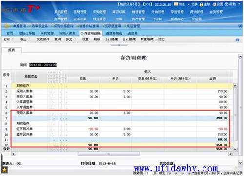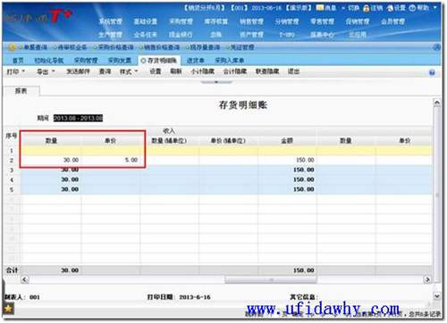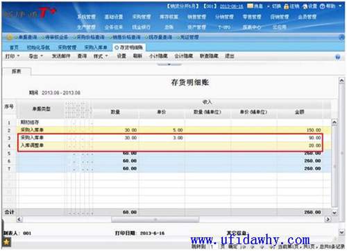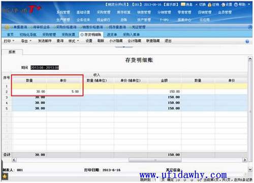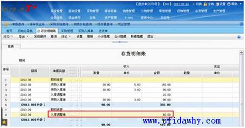 (3)查看存貨明細賬,只有一條采購入庫單記錄,單價為發(fā)票上的真實單價