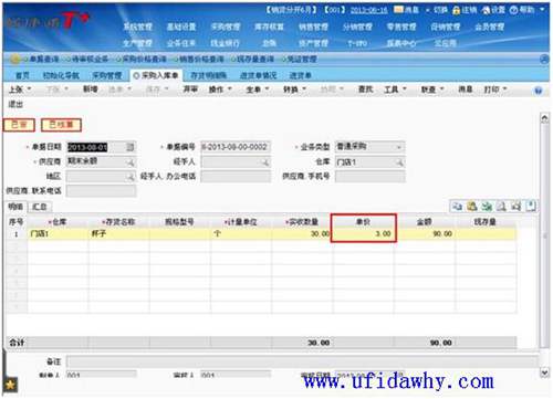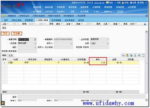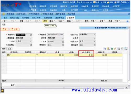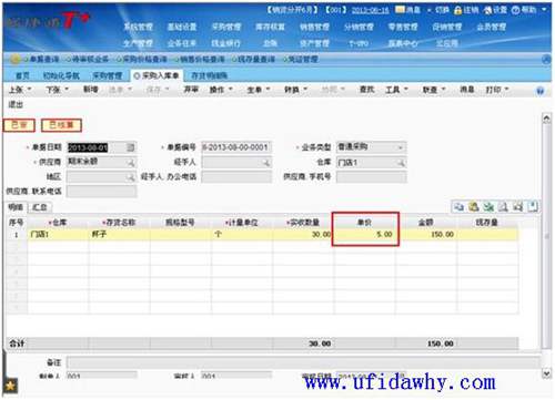 (2)9月1日填寫全部發(fā)票以后,入庫單上的單價不會被反填,仍然是暫估單價,但是入庫單上會有“已核算”的標(biāo)志