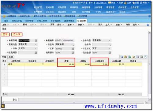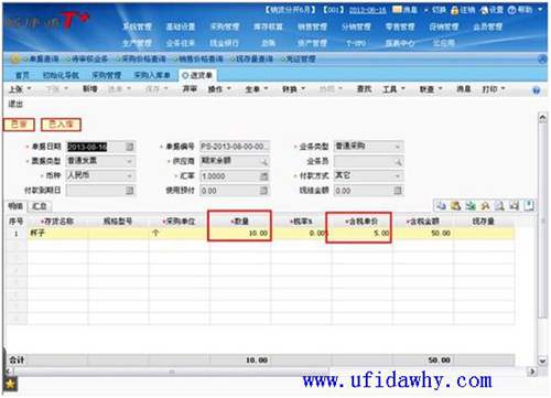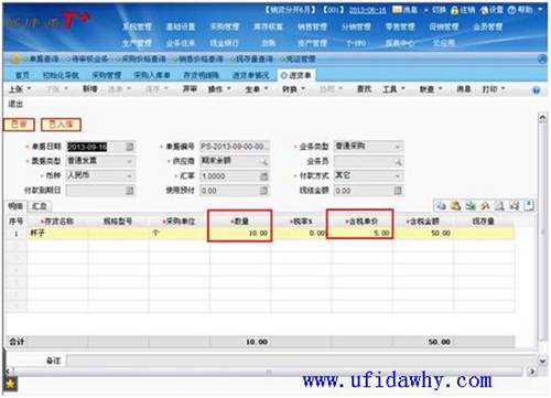 (2)填寫10個進貨單之后,采購入庫單上的單價不會改變,也不會有“已核算”的標(biāo)志,