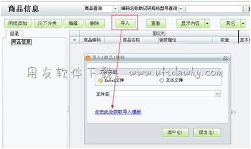 2、用商品信息模板添加(1)點(diǎn)擊導(dǎo)入---點(diǎn)擊此處獲取導(dǎo)入模板。