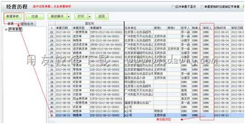 (2)客戶來(lái)提貨時(shí)再到經(jīng)營(yíng)歷程中找到這張銷售單(通過(guò)看審核人一列為空可以快速找到這張單據(jù))。