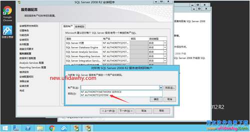 服務賬戶:我為了方便管理選擇使用相同賬戶,出現(xiàn)兩個選擇,我選擇System(System的權限比NetWork Service的權限高),一般情況就選擇System,啟動類型我就選擇手動啦,后面的排序規(guī)則默認即可,如下圖所示: