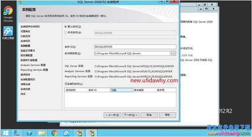 實例名也就是安裝在Windows服務里的名字,此處由于是安裝用友T6,所以要注意選擇默認實例,實例的目錄選默認,下一步,如下圖所示:
