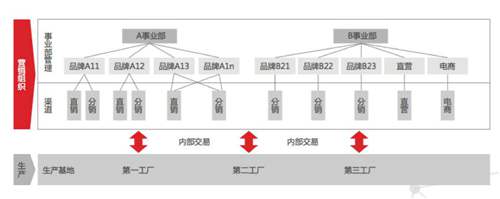 事業(yè)部—品牌管理模式下的管理會(huì)計(jì) 以營(yíng)銷組織為基礎(chǔ)建立事業(yè)部,事業(yè)部下按品牌分類管理,末端組織按渠道開展業(yè)務(wù)。