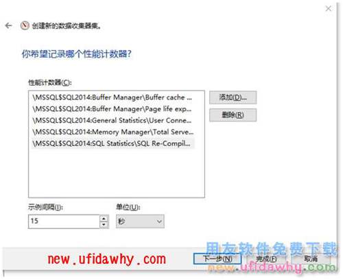 ⑤添加其他重要計(jì)數(shù)器。添加SQLServer實(shí)例所需的所有計(jì)數(shù)器和其他重要值(例如處理器時(shí)間和磁盤時(shí)間),選擇完成點(diǎn)擊下一步,點(diǎn)擊保存并關(guān)閉。