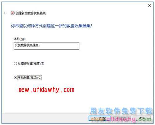 鍵入數(shù)據(jù)收集器集的名稱,選擇“手動(dòng)創(chuàng)建”,然后單擊“下一步”。