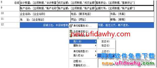 1、進(jìn)入打印報表設(shè)計,選中最后一行,右鍵插入下邊1行。
