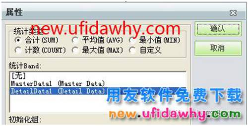 2、再次右鍵點擊選擇統(tǒng)計類型為合計,選擇“DetailDatal”點確認。