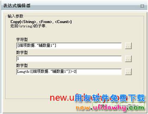 6、length長度函數取字段“輔數量1”的整體長度,需要減去最后漢字的字符長度2位,單個漢字屬于兩個字符。最后copy函數正確的配置如下圖: