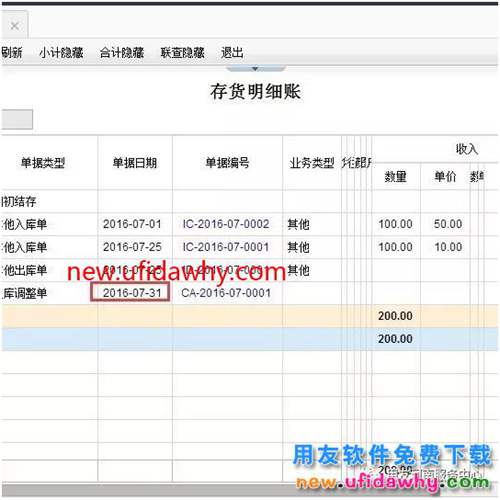 而同樣金額的7月31號(hào)調(diào)整單沒(méi)有影響出庫(kù)單成本,如下圖所示: