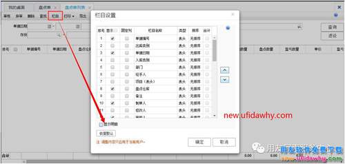 這位小伙伴前期都操作沒問題,就差最后一步,在盤點單列表查詢結果界面,點擊“欄目”,將左下角“顯示明細”的勾去掉,如下圖所示: