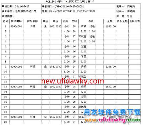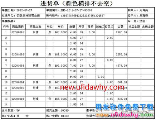 用友T1服裝鞋帽版的打印報表怎么設(shè)計出顏色尺碼?用友T1商貿(mào)寶服裝鞋帽版具有特殊行業(yè)性質(zhì),比如在單據(jù)打印中增加顏色尺碼的打印。某些商品需要對應(yīng)顏色和尺碼,需要在二維表中錄入,但錄入完之后只顯示整體的總數(shù)量,無法區(qū)分具體的顏色尺碼數(shù)量。因此在服裝鞋帽版中添加了多種打印樣式,方便不同需求的打印。