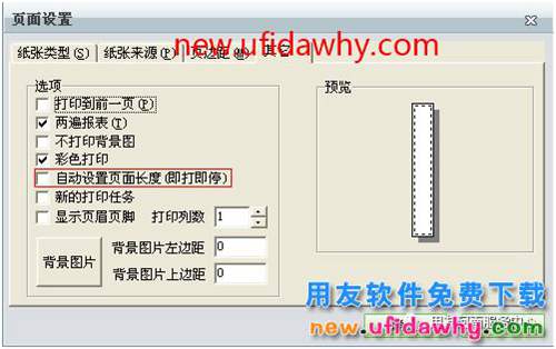 3、同樣在頁面設(shè)置中,選擇“其他”標(biāo)簽頁,勾選“自動設(shè)置頁面長度(即打即停)”。