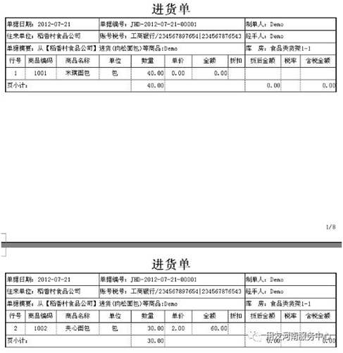 ?自動(dòng)追加空行:在打印時(shí),如打印頁(yè)未滿,或者沒有達(dá)到設(shè)置的每頁(yè)打印行數(shù),會(huì)自動(dòng)以空行來(lái)補(bǔ)充完整。上述單據(jù)若勾選了自動(dòng)追加空行,第二頁(yè)的預(yù)覽效果就會(huì)變?yōu)椋?/p>