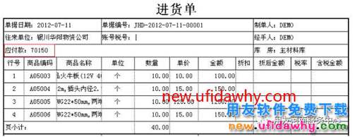 例如,銀川華陽物資公司的此前應(yīng)付款為68500元,本單進(jìn)貨新增1650元應(yīng)付款,那么合計(jì)的應(yīng)付款為70150。