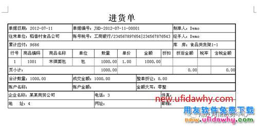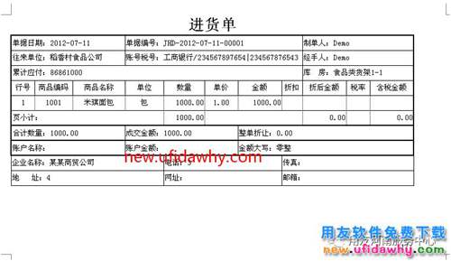 3、確認(rèn)保存后,單據(jù)預(yù)覽效果如下: