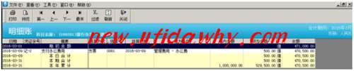 查詢條件輸入完后,點擊【確定】進入總賬,即可出現(xiàn)所設條件的明細賬。在明細賬窗口中,通過工具欄【第一】【上一】【下一】【最末】按鈕,查看“第一科目”“上一科目”“下一科目”“最末科目”的明細賬。