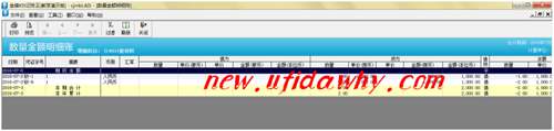 然后,過濾條件輸入完畢后單擊【確定】按鈕開始利用光標鍵瀏覽查詢數(shù)量金額明細賬,數(shù)量金額明細賬窗口如下圖所示: