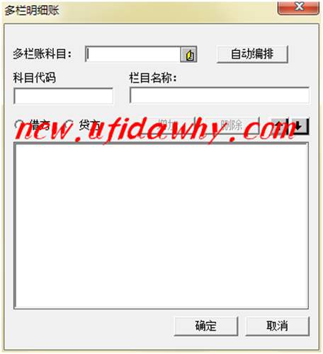 進(jìn)入“多欄帳” →增加→選擇一個(gè)要設(shè)臵為多欄帳的會(huì)計(jì)科目(如:管理費(fèi)用)→確定→單擊“自動(dòng)編排” →把最后一個(gè)科目刪除→確定→輸入多欄帳的名稱→確定→確定(則可看到多欄帳)。