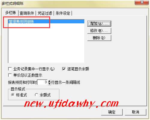 步驟五 金蝶KIS記賬王系統(tǒng)自動(dòng)保存所生成的多欄式明細(xì)賬格式并返回“多欄式明細(xì)賬”窗口,管理費(fèi)用科目已經(jīng)添加成功。