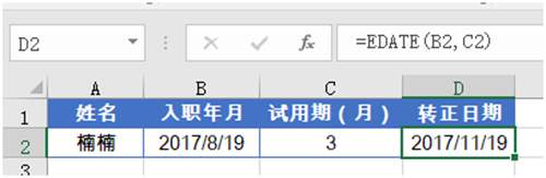 如下圖,要根據(jù)B列入職年月計算出轉(zhuǎn)正日期。