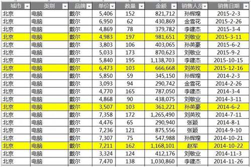 這里我們想把已經(jīng)被顏色填充的“銷售情況統(tǒng)計表”中的重點數(shù)據(jù)篩選出來。