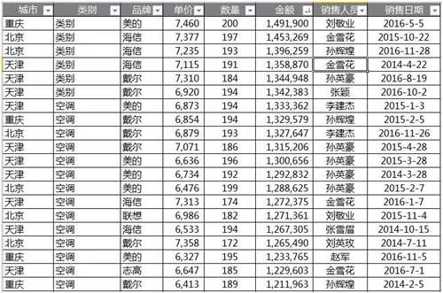 銷售數(shù)據(jù)已按照金額從大到小排列