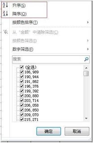 點擊標(biāo)題字段“金額”處的三角選項按鈕,然后選擇【降序】