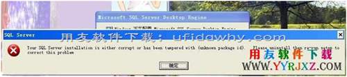 Your SQL server installation is either corrupt or has been tampered with (unknown package id).please uninstall then re-run setup to correct this problem。如下圖所示: