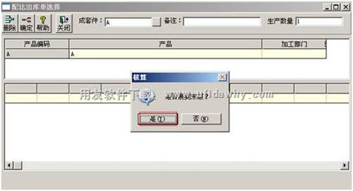 2、根據(jù)產(chǎn)成品生成材料出庫(kù)單,點(diǎn)擊“核算”—“材料出庫(kù)單”,表體空白處右鍵鼠標(biāo)點(diǎn)擊“配比出庫(kù)”,成套件選擇A產(chǎn)品,確定后提示“是否展到末級(jí)”,點(diǎn)擊“是”后,子項(xiàng)根據(jù)產(chǎn)品結(jié)構(gòu)列示所以子項(xiàng);